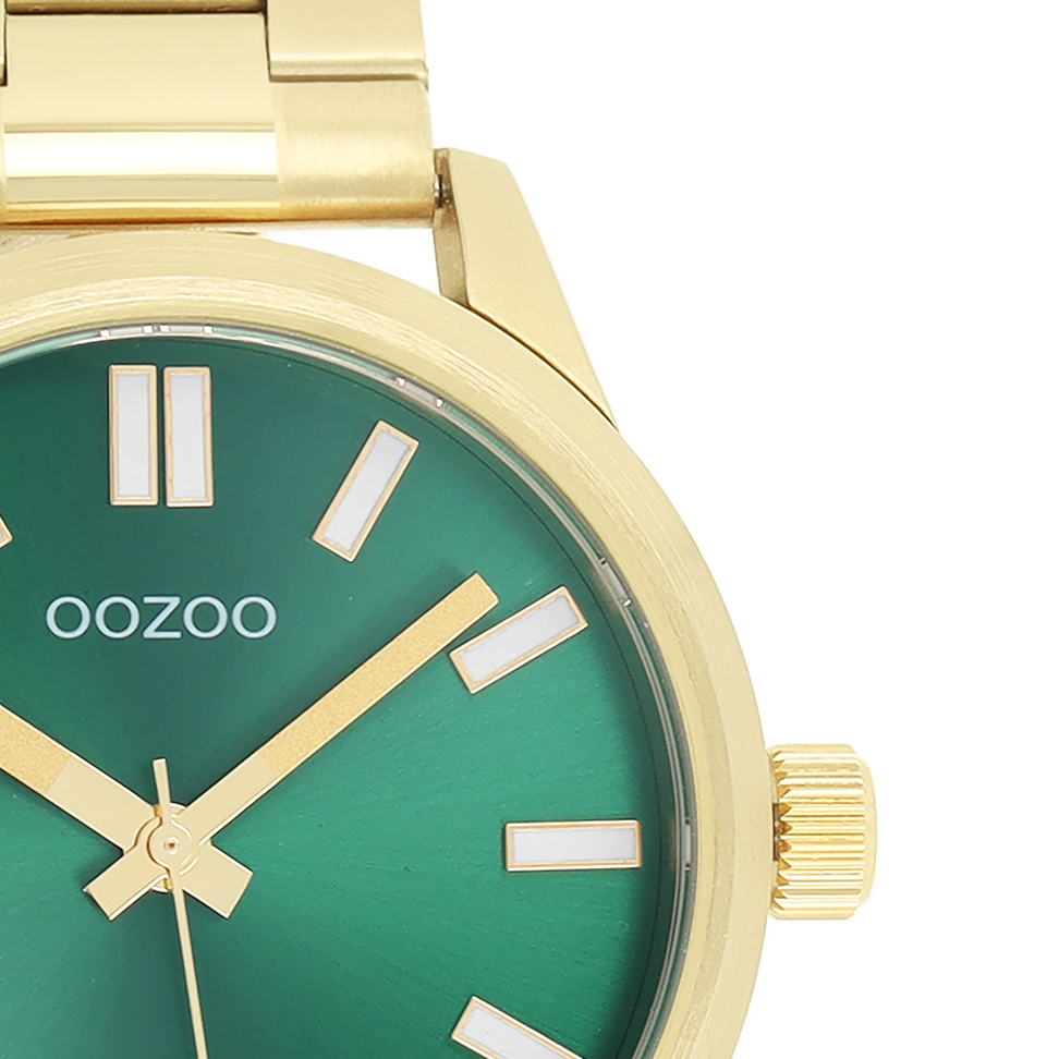 An instant modern classic, this gents size gold/green watch has a classic design with a modern, typically OOZOO twist: the beautiful green sunray dial is complemented by gold hands & digits that glow in the dark!