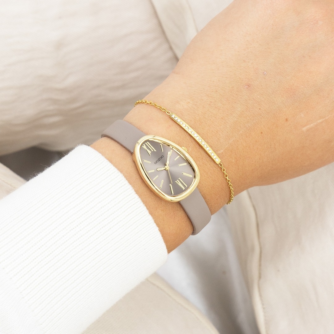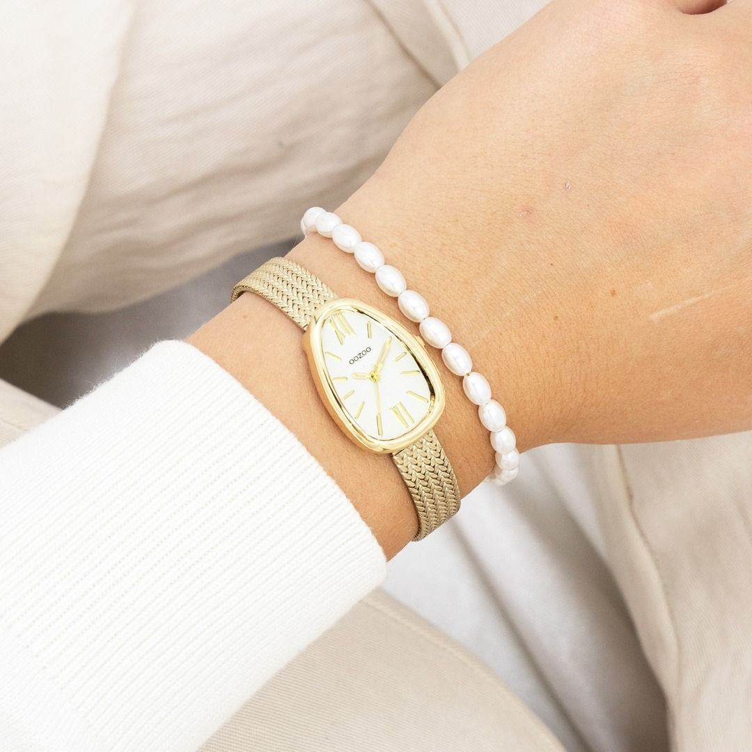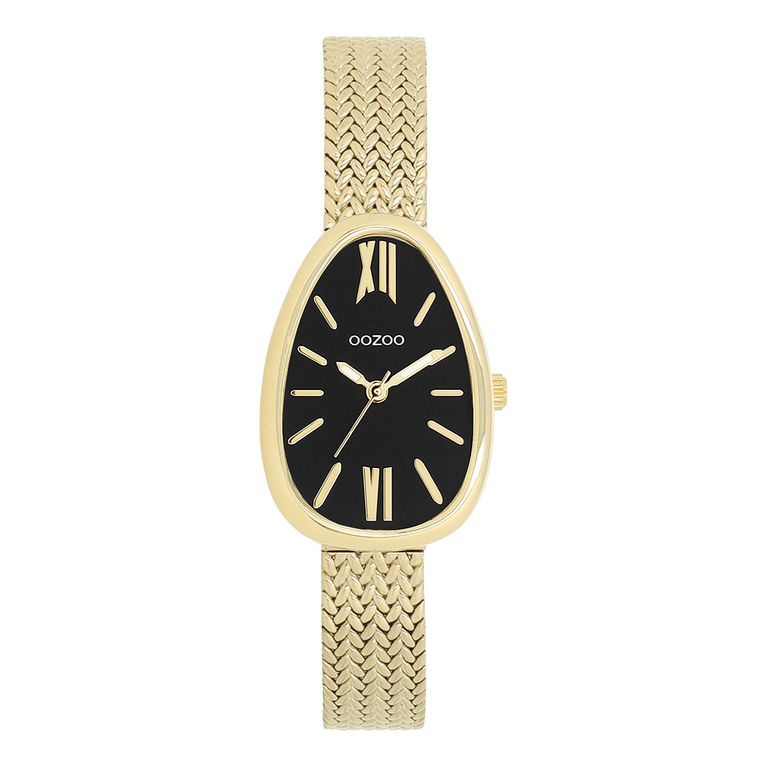 Something completely different. The egg-shaped OOZOO watch offers an unusual but familiar shape on the wrist. The gold case is combined with a brand new V-mesh stainless steel bracelet and a set of stripes & roman numerals on the dial give it a classy, timeless feel.